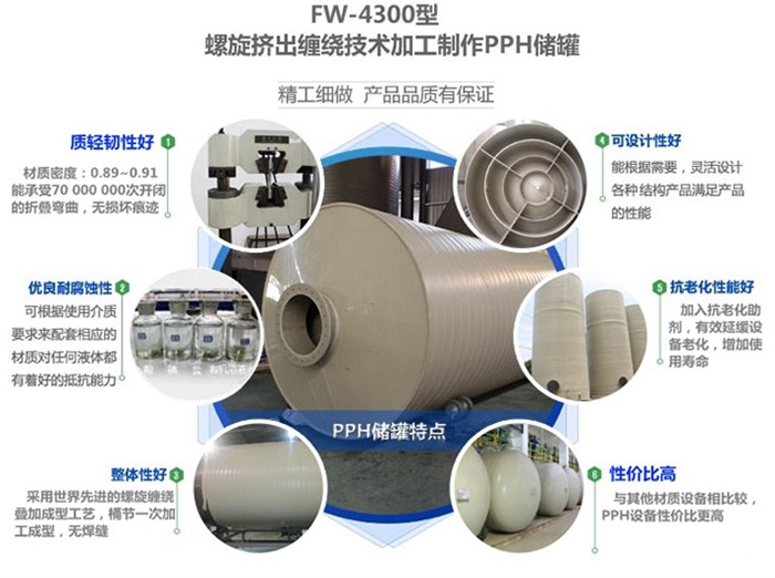 pph立式儲(chǔ)罐成型工藝采用螺旋擠出纏繞技術(shù),品質(zhì)達(dá)到國際先進(jìn)水平,主要工序有罐體擠出纏繞、外部焊接、內(nèi)縫焊接、管口安裝等。