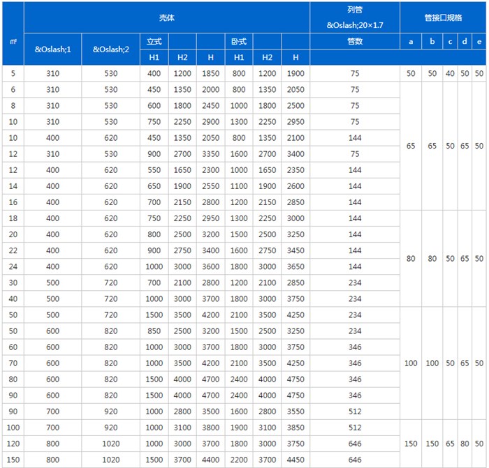 每臺換熱器規(guī)格面積由訂戶指定,換熱品及殼體直徑請參考換熱器規(guī)格表。